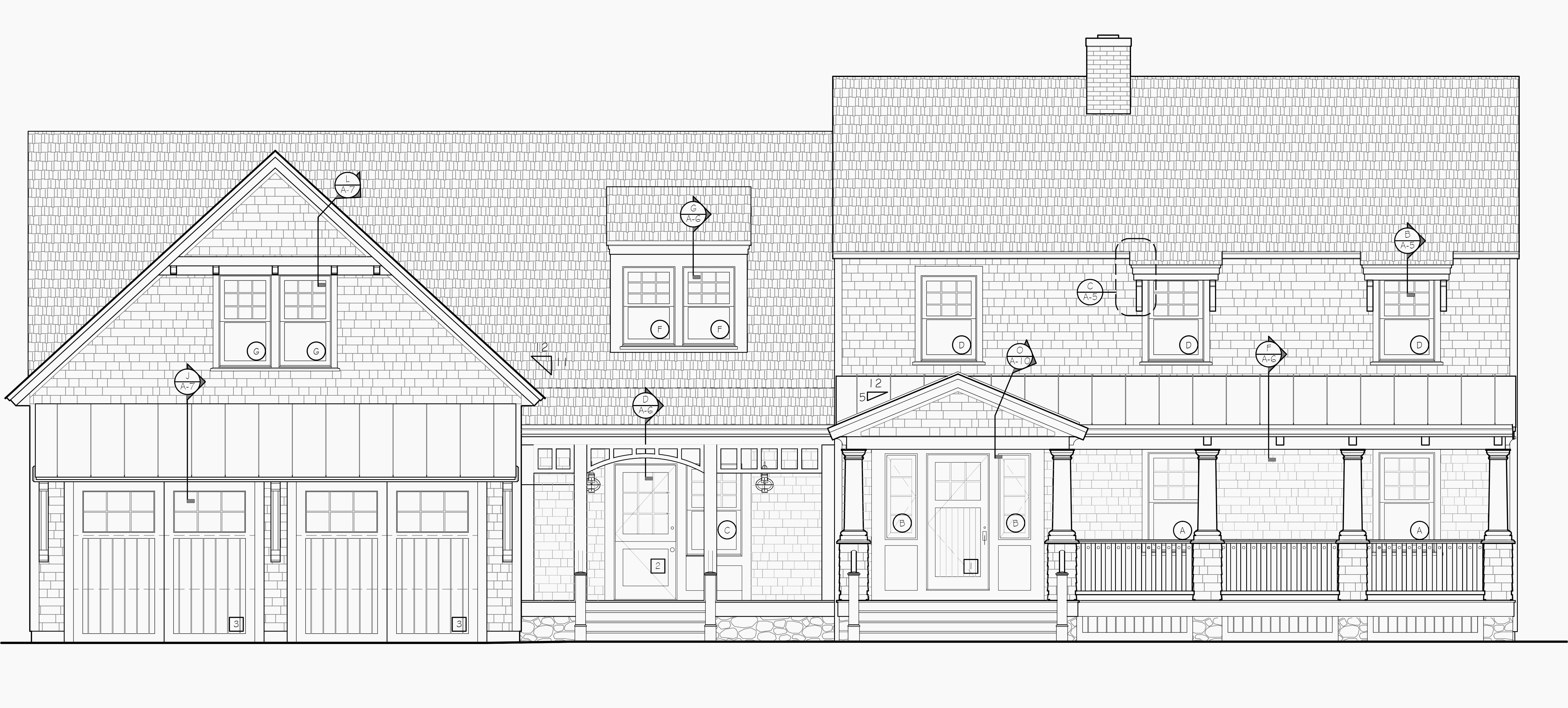 Project Description: A large sitting porch at the main entry, an uplifted side entry to establish the primary everyday arrival, and a garage dormer to balance the overall massing.